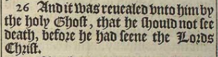 26 And it was reuealed vnto him by the holy Ghost, that he should not see death, before he had seene the Lords Christ.