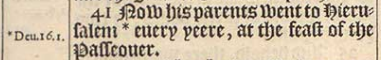 41 Now his parents went to Hierusalem *euery yeere, at the feast of the Passeouer.[*Deu. 16. 1.]