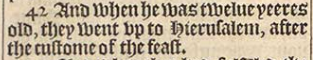 42 And when he was twelue yeeres old, they went vp to Hierusalem, after the custome of the feast.