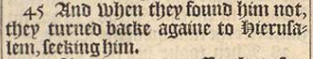 45 And when they found him not, they turned backe againe to Hierusalem, seeking him.
