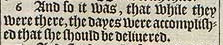 6 And so it was, that while they were there, the dayes were accomplished that she should be deliuered.