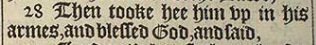 28 Then tooke hee him vp in his armes, and blessed God, and said,