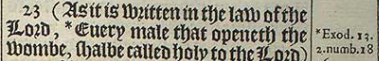 23 (As it is written in the law of the Lord, *Euery male that openeth the wombe, shalbe called holy to the Lord)[*Exod. 13. 2. numb. 18 16.]