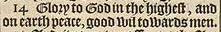 14 Glory to God in the highest, and on earth peace, good wil towards men.