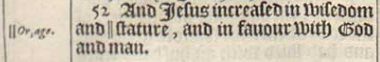52 And Iesus increased in wisedom and ||stature, and in fauour with God and man.[|| Or, age.]