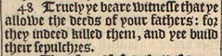 48 Truely ye beare witnesse that ye allowe the deeds of your fathers: for they indeed killed them, and yee build their sepulchres.