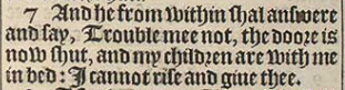 7 And he from within shal answere and say, Trouble mee not, the doore is now shut, and my children are with me in bed: I cannot rise and giue thee.