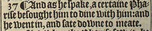 37 ¶ And as he spake, a certaine Pharise besought him to dine with him: and he went in, and sate downe to meate.