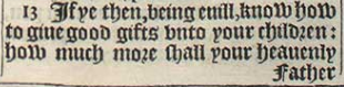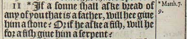 11 *If a sonne shall aske bread of any of you that is a father, will hee giue him a stone? Or if he aske a fish, will he for a fish giue him a serpent?[*Matth.7. 9.]