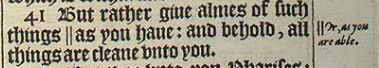 41 But rather giue almes of such things || as you haue: and behold, all things are cleane vnto you.[|| Or, as you are able.]