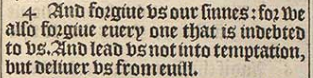 4 And forgiue vs our sinnes: for we also forgiue euery one that is indebted to vs. And lead vs not into temptation, but deliuer vs from euill.