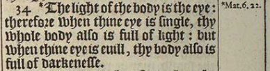 34 *The light of the body is the eye: therefore when thine eye is single, thy whole body also is full of light: but when thine eye is euill, thy body also is full of darkenesse.[*Mat.6. 22]