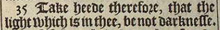 35 Take heede therefore, that the light which is in thee, be not darknesse.