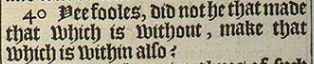 40 Yee fooles, did not he that made that which is without, make that which is within also?