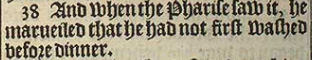 38 And when the Pharise saw it, he marueiled that he had not first washed before dinner.