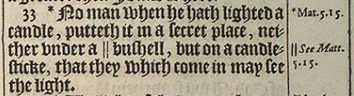 33 *No man when he hath lighted a candle, putteth it in a secret place, neither vnder a || bushell, but on a candlesticke, that they which come in may see the light.[*Mat.5.15. , || See Matt. 5. 15.]