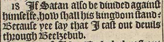 18 If Satan also be diuided against himselfe, how shall his kingdom stand? Because yee say that I cast out deuils through Beelzebub.