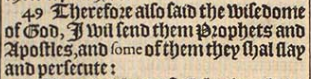49 Therefore also said the wisedome of God, I wil send them Prophets and Apostles, and some of them they shal slay and persecute: