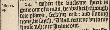 24 *When the vncleane spirit is gone out of a man, he walketh through drie places, seeking rest: and finding none, he sayth, I will returne vnto my house whence I came out.[*Mat. 12. 43.]