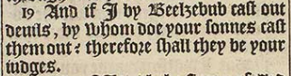 19 And if I by Beelzebub cast out deuils, by whom doe your sonnes cast them out? therefore shall they be your iudges.