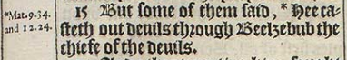 15 But some of them said, *Hee casteth out deuils through Beelzebub the chiefe of the deuils.[*Mat.9. 34. and 12. 24.]