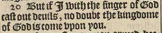 20 But if I with the finger of God cast out deuils, no doubt the kingdome of God is come vpon you.