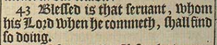 43 Blessed is that seruant, whom his Lord when he commeth, shall find so doing.