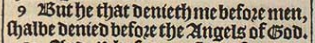 9 But he that denieth me before men, shalbe denied before the Angels of God.