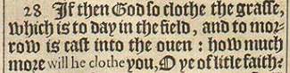 28 If then God so clothe the grasse, which is to day in the field, and to morrow is cast into the ouen: how much more will he clothe you, O ye of litle faith?