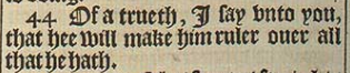44 Of a trueth, I say vnto you, that hee will make him ruler ouer all that he hath.