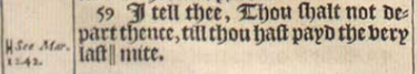59 I tell thee, Thou shalt not depart thence, till thou hast payd the very last || mite.[|| See Mar. 12.42.]