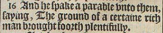 16 And he spake a parable vnto them, saying, The ground of a certaine rich man brought foorth plentifully.
