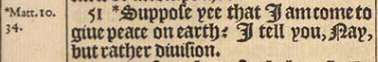 51 *Suppose yee that I am come to giue peace on earth? I tell you, Nay, but rather diuision.[*Matt. 10. 34.]