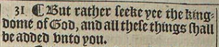 31 ¶ But rather seeke yee the kingdome of God, and all these things shall be added vnto you.