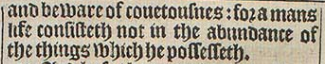 15 And he said vnto them, Take heed and beware of couetousnes: for a mans life consisteth not in the abundance of the things which he possesseth.