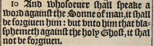 10 And whosoeuer shall speake a word against the Sonne of man, it shall be forgiuen him: but vnto him that blasphemeth against the holy Ghost, it shal not be forgiuen.
