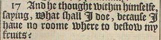 17 And he thought within himselfe, saying, What shall I doe, because I haue no roome where to bestow my fruits?