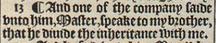 13 ¶ And one of the company saide vnto him, Master, speake to my brother, that he diuide the inheritance with me.