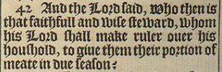 42 And the Lord said, Who then is that faithfull and wise steward, whom his Lord shall make ruler ouer his houshold, to giue them their portion of meate in due season?