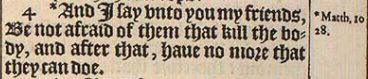 4 *And I say vnto you my friends, Be not afraid of them that kill the body, and after that, haue no more that they can doe.[*Matth. 10 28.]