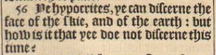 56 Ye hypocrites, ye can discerne the face of the skie, and of the earth: but how is it that yee doe not discerne this time?