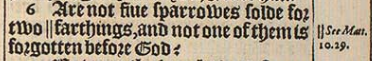 6 Are not fiue sparrowes solde for two || farthings, and not one of them is forgotten before God?[|| See Matt. 10.29.]