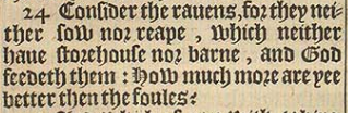24 Consider the rauens, for they neither sow nor reape, which neither haue storehouse nor barne, and God feedeth them: How much more are yee better then the foules?