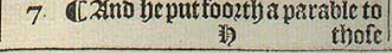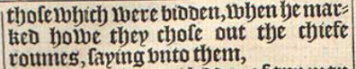 7 ¶ And he put foorth a parable to those which were bidden, when he marked howe they chose out the chiefe roumes, saying vnto them,