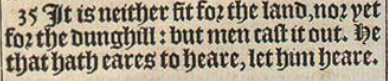 35 It is neither fit for the land, nor yet for the dunghill: but men cast it out. He that hath eares to heare, let him heare.