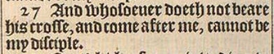 27 And whosoeuer doeth not beare his crosse, and come after me, cannot be my disciple.