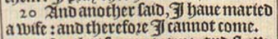 20 And another said, I haue maried a wife: and therefore I cannot come.