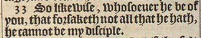 33 So likewise, whosoeuer he be of you, that forsaketh not all that he hath, he cannot be my disciple.