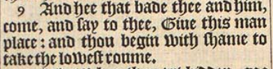 9 And hee that bade thee and him, come, and say to thee, Giue this man place: and thou begin with shame to take the lowest roume.
