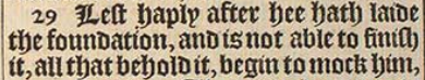29 Lest haply after hee hath laide the foundation, and is not able to finish it, all that behold it, begin to mock him,